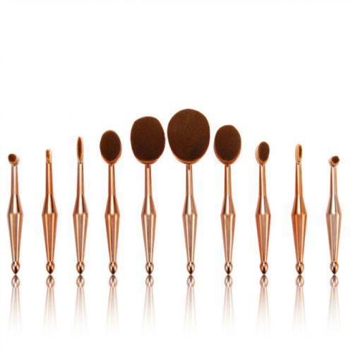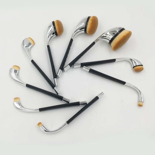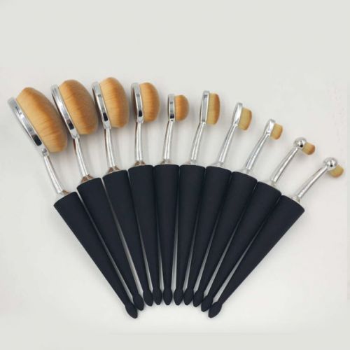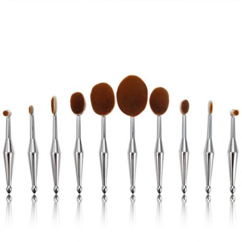 10pcs Silver Pro Makeup Brushes Toothbrush Shape Oval Contour Powder Blush