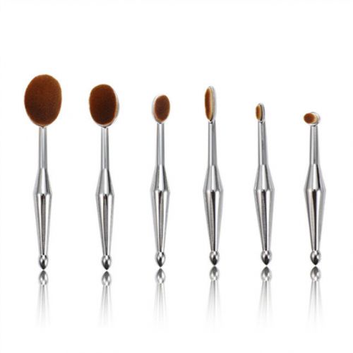 6 pcs Silver Toothbrush Shaped Makeup Brush Set Professional Personal Concealer Foundation Powder Blending Brushes