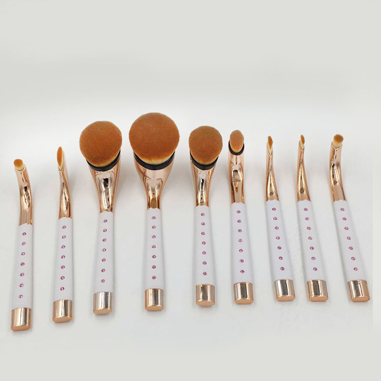 9 pcs White Golden Diamond Handle Makeup Brush Set