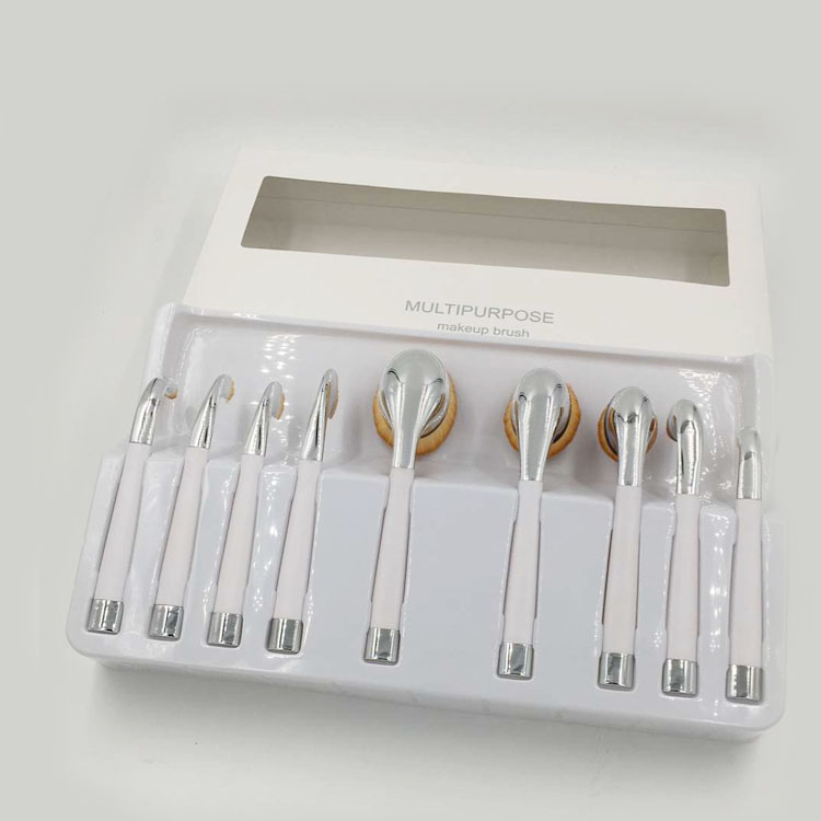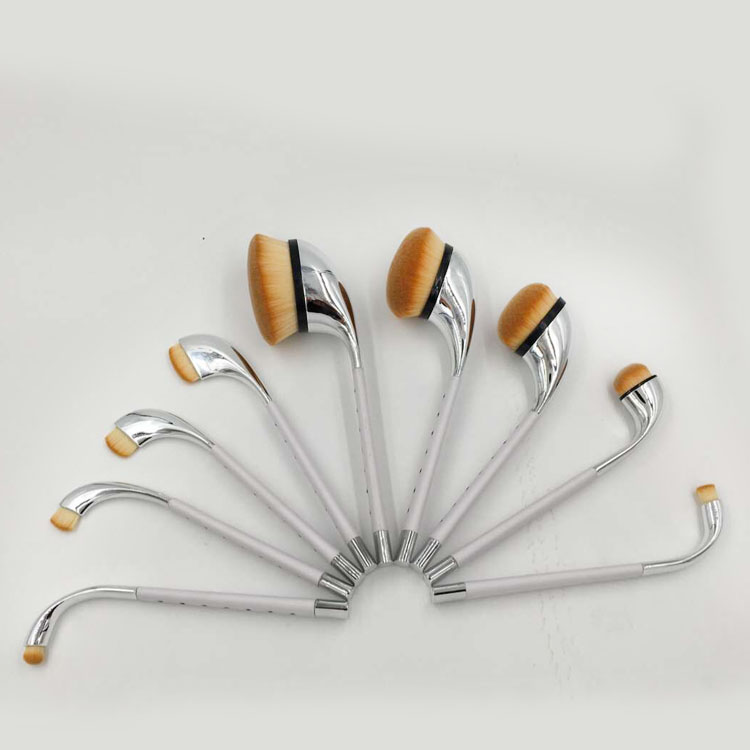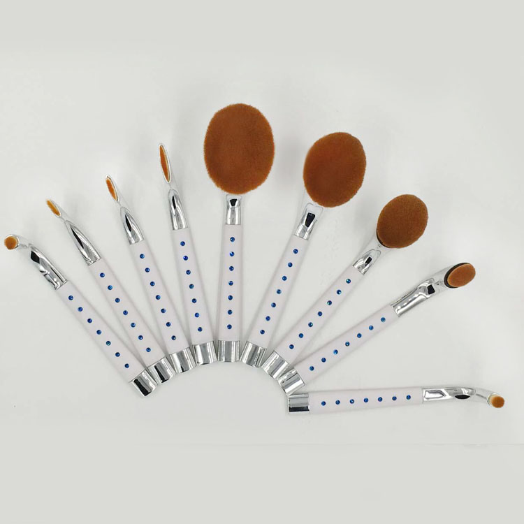 9 pcs White Silver Diamond Handle Makeup Brush Set Face Foundation Powder Cream Blusher Toothbrush Shape Oval Brush Kits