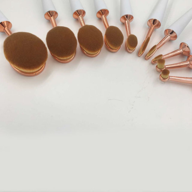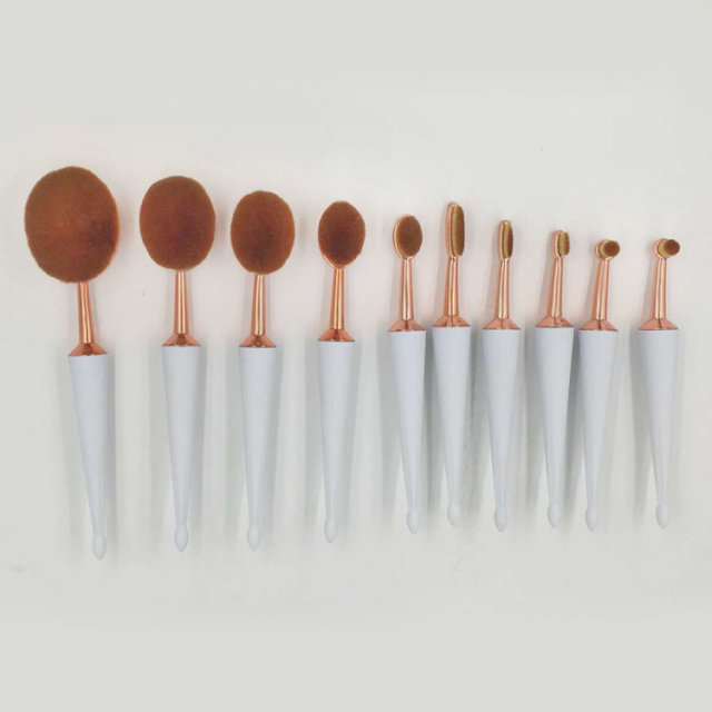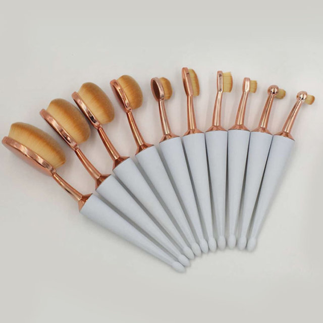 10pcs White Umbrella-type Handel Make up Beauty Tool kits Toothbrush Shape Oval Contour Powder Blush Foundation Brush